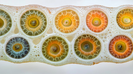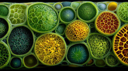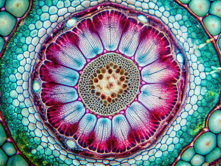 microscope slide with detailed view of plant stem, complete with cells and minutiae, created with generative ai