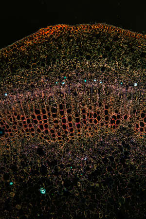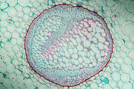 Tissue cell- cross section cucurbits (pumpkin) stem. Science background- micro preparation for scientific study and research of life on Earth.