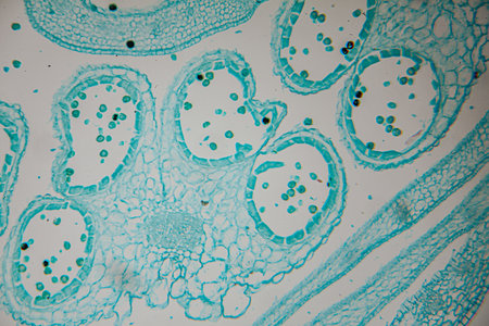 Cross sections of plant stem under microscope view