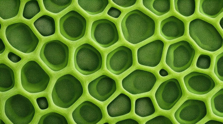 This captivating close-up image showcases a honeycomb-like structure in vivid green tones, emphasizing intricate textures and natural patterns found in the environment.