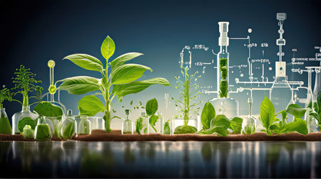 Green plants and scientific equipment in biology laborotary