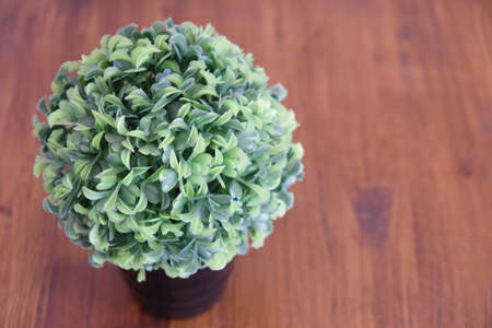Beautiful green flowerpot in front of brick pattern wallpaper in the modern office or home