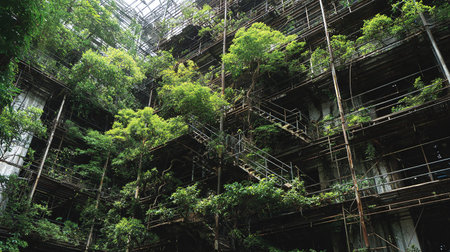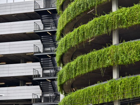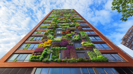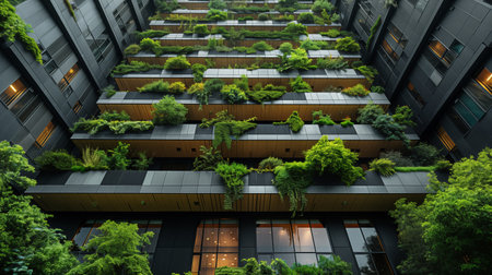 Discover a striking modern building facade adorned with lush greenery. This urban architectural marvel showcases the beauty of sustainability and nature integration.