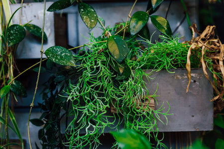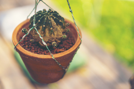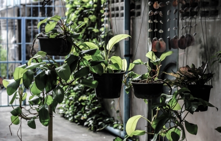 Plants in the pot hanging on the wall,vintage style