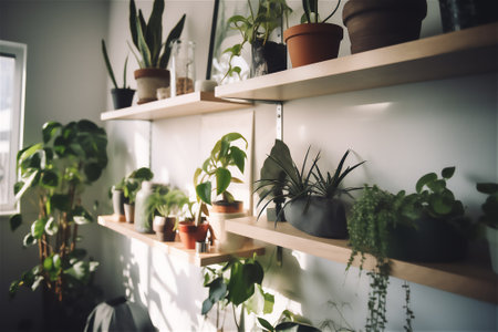 A vibrant and inviting home environment featuring shelves of indoor plants and decor, highlighting the importance of nature in our everyday lives.generative ai