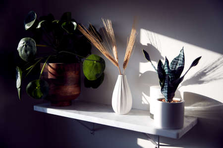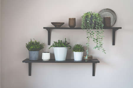 Close Up Of House Plants On Shelf In Stylish Contemporary Home