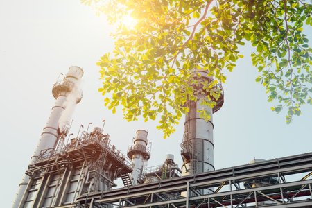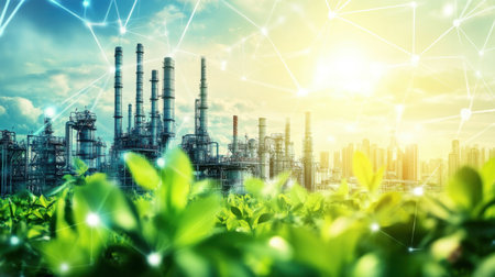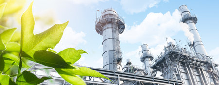 Petrochemical Industrial Factory saving environment ozone low carbon footprint wide for banner, Green Industry, Eco Power Factory,