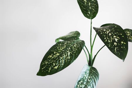 Dieffenbachia home plant. Minimal modern interior style withclose up for text on white wall background