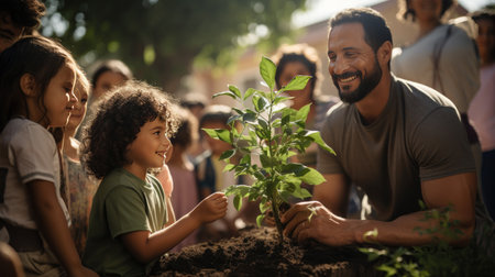 A vibrant image showcases activists planting a tree, symbolizing unity, acceptance, and unwavering support Hopeful colors highlight their collaborative action, nurturing growth and a brighter future This heartwarming scene captures environmental stewardship and social harmony, inspiring collective efforts towards an equitable and sustainable world The photo embodies community spirit and AI Generative