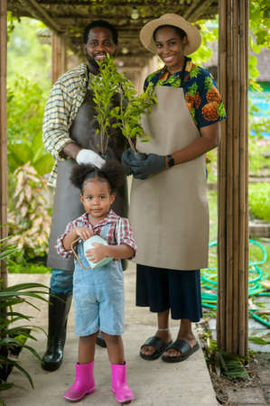 A Happy black agronomist family enjoying and working in farmland, agriculture concept
