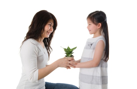 A foster child giving their foster mother a plant, symbolizing the growth and nurturing of their relationship.