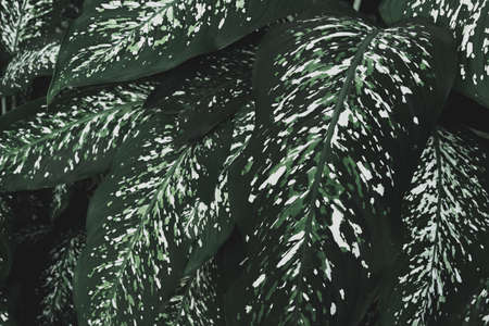 Dark tone of textured surface of Alocasia amazonica green leaf background.