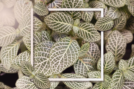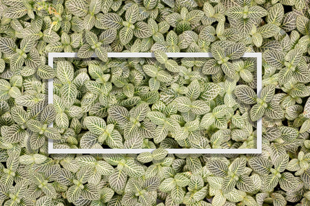 Square frame, Creative layout made Green leaf tree background with paper card note. Blank for advertising card or invitation. Nature concept. Fern leaf in Forest. Summer poster.