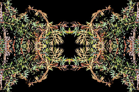 Green leaves artistic dark black pattern background.