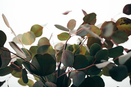 Close up of decorative eucalyptus branches isolated on white background