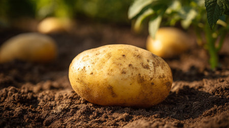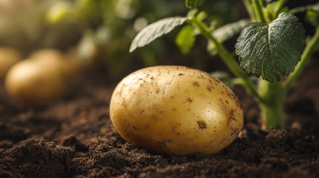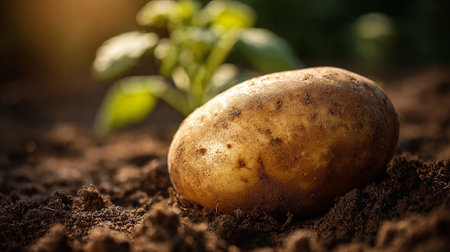 Freshly Harvested Potato Resting on Soil Ready for a Nutritious Meal