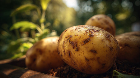 Freshly Harvested Potato on Rich Earth in Sunlight