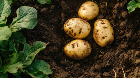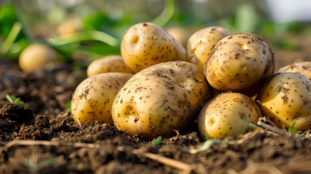 Freshly Dug Potatoes Nestled in Soil, Ready for the Next Delicious Recipe