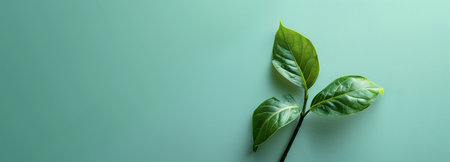 Sprout on a turquoise background, green world and earth day concept, panorama, copy space