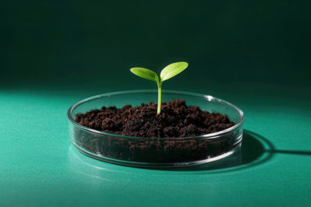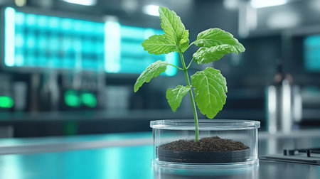 Genetically modified plant tested in petri dish .Ecology laboratory