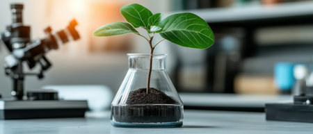 Green plants and scientific equipment in biology laborotary
