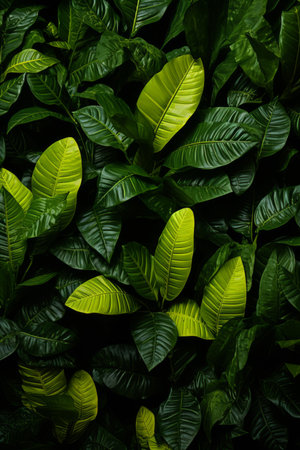 AI Generated. Lush Green Tropical Foliage Wall Texture