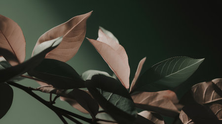 AI generated dark toned leaves with delicate vein patterns creating a calm mysterious natural luxury mood suitable for backgrounds fashion design and artistic visuals