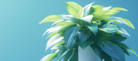 AI Generated. Lush Green Leaves on a Turquoise Background