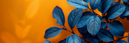 Vibrant Blue Leaves Against Warm Orange Background in Nature.
