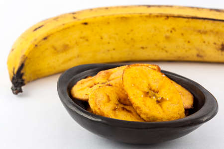 Fried plantains in the bowl in Playa del Carmen Quintana Roo Mexico.