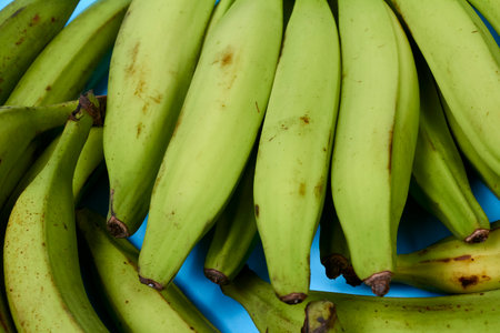 Fresh green banana on blue background, maqueno barraganete dominico