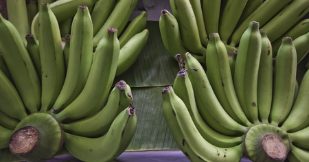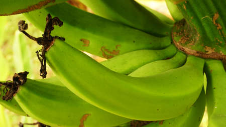 green raw bananas closeup