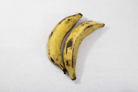 The two bananas with some black marks isolated on the white background