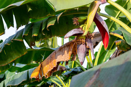 Banana Bud on tree with soft green background