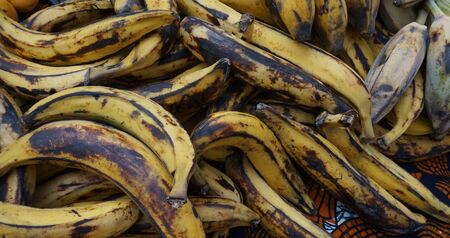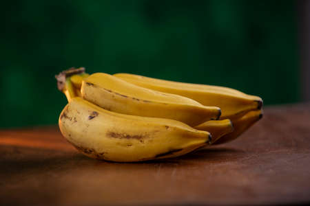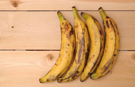 Ripe nigerian plantain on wood kitchen table surface