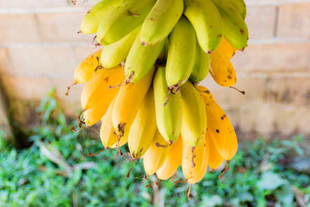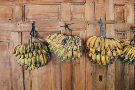A bunch of Banana hanging on old wooden wall