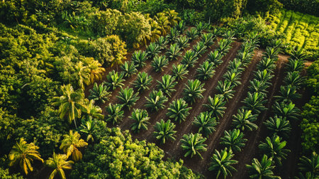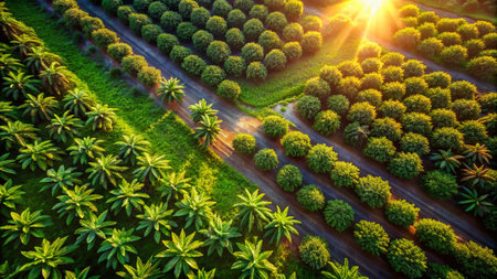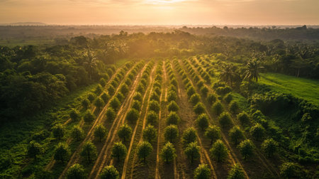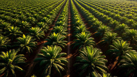 Palm oil plantation in the morning light. Rows of palm trees.ai generated