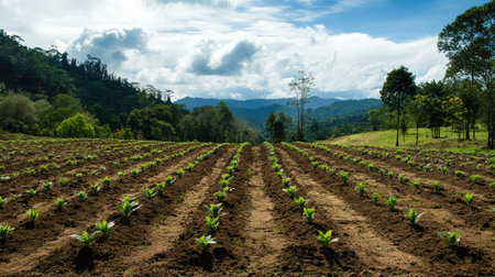 A stunning view of vibrant red soil filled with young seedlings capturing the essence of growth and sustainability in nature, showcasing the beauty of reforestation efforts.