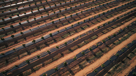 Aerial view of rows of sugarcane plantations in South Australia