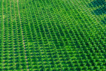 Oil palm plantation field aerial view agricultural aerial view