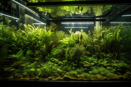 aquarium with variety of aquatic plants and seagrasses, including floating varieties, created with generative ai