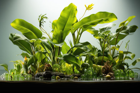freshwater ecosystem with algae and other aquatic plants thriving in clear water, created with generative ai