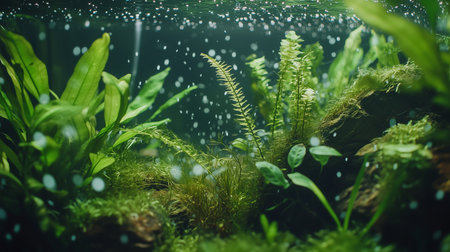 natural aquarium with variety of aquatic plants and seagrasses, created with generative ai