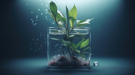 Plants in a glass tank in a modern greenhouse. Aquarium