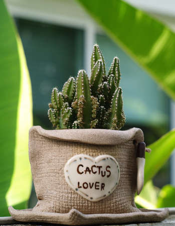 Little cactus in pot with nature background