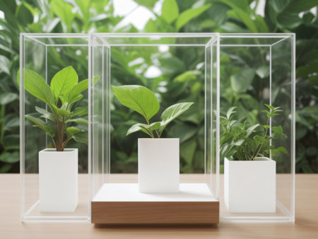High-definition image of green plant stems housed in a glass container, conceptualizing environmental conservation and bio-research. Created with generative AI tools