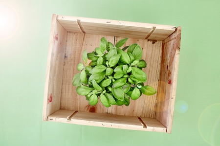A studio photo of potted basil