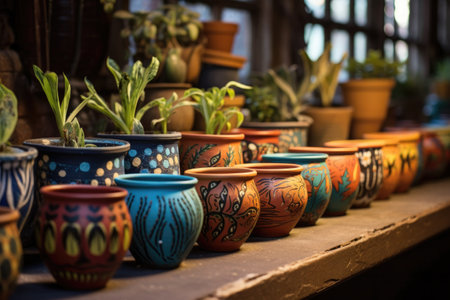 Ceramic and terracotta pots or Ceramic pot stands out from the rest of clay pots concept