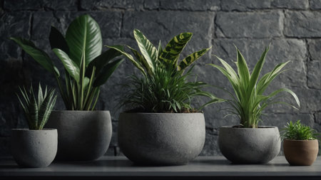 AI Generated. Eco-friendly modern gray interior with decoration houseplants in stone pots
