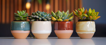 An overhead shot showcasing beautifully arranged succulent plants in terracotta pots, perfect for adding a touch of nature to indoor spaces and enhancing home aesthetics.